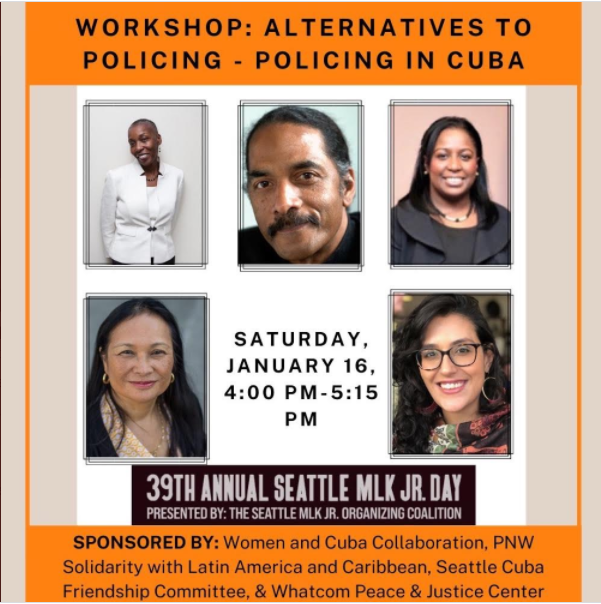 January 16, 2021, The Seattle-Cuba Friendship Committee and the Seattle MLK Coalition hosted the webinar “Alternatives to Policing - Policing in Cuba”, as part of the Martin Luther King Day events.