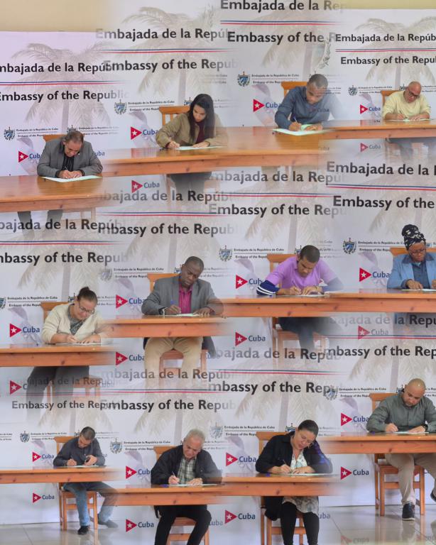 Pretoria, 22 April 2026. —The staff of the Cuban Embassy in South Africa, together with the heads of the cooperation brigades, in an emotional ceremony, endorsed the ‘My Signature for the Homeland’ movement with their signatures.
