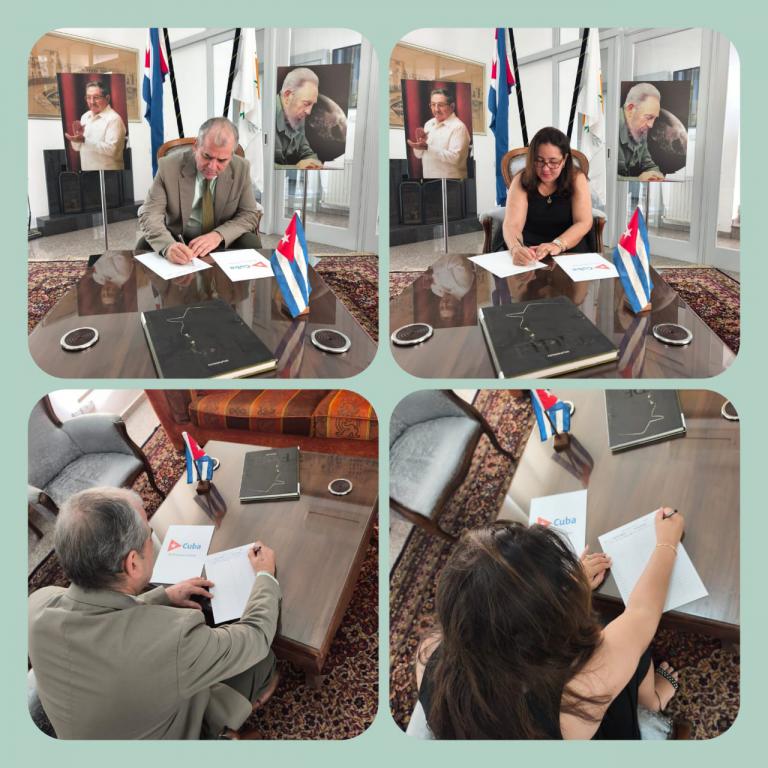 Staff of @embacubachipre joined the 'My Signature for the Homeland' campaign, an initiative that reaffirms support for the Revolution and the sovereignty of #Cuba against external threats and also confirms the commitment to peace and support for the free determination of the Cuban people to decide their own future.