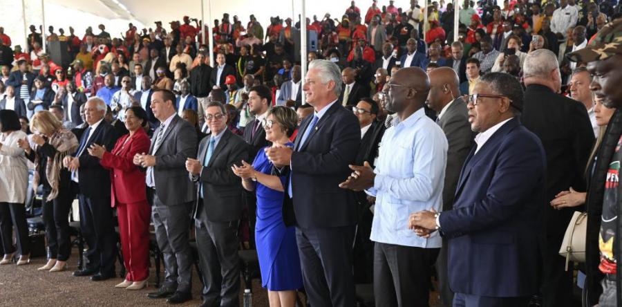 Previously, the Cuban president visited the Cuban Embassy in Pretoria and attended a massive event of solidarity in the capital's Freedom Park, where he honored the memory of the 2,289 Cubans who fell fighting in African lands for freedom, as well as the historic leader of the Cuban Revolution, Fidel Castro, to whom he paid tribute with the laying of a wreath.