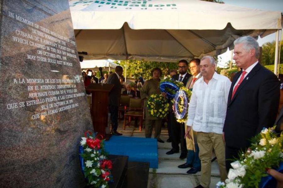 Bridgetown, Dec 6 (Prensa Latina) Cuban President Miguel Díaz-Canel paid tribute on Tuesday to the victims of the terrorist attack against a Cubana de Aviación plane flying from Barbados to Cuba on October 6, 1976.