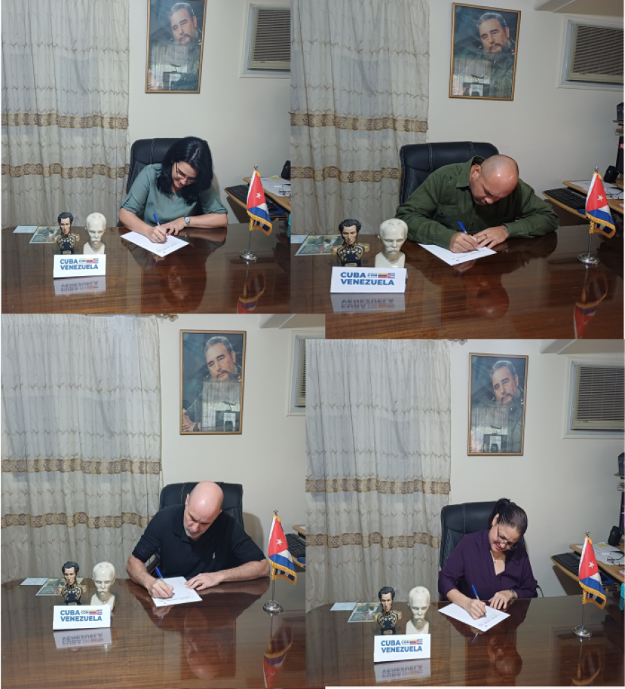 Diplomats and correspondents from the Prensa Latina news agency signed the Cuban government's statement at the Cuban Embassy in Cairo in support of the sister Bolivarian Republic of Venezuela.