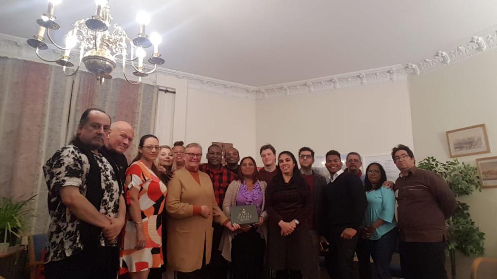 The opportunity was propitious to celebrate the Day of the Cuban Culture. After an explanation about the date given by Erlín Rondón Cedeño, the meeting began with the glorious notes of the Anthem of Bayamo. Yossiel Coronado, a Cuban resident, closed it with a beautiful interpretation of the song "My blue unicorn", by Silvio Rodríguez. (Embassy of Cuba in Norway)