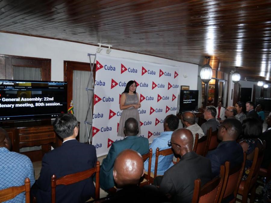 Harare, October 29, 2025 – Representatives from the Ministry of Foreign Affairs, Ambassadors accredited to Zimbabwe, and friends of Cuba gathered today at the diplomatic headquarters of the Caribbean nation to witness the latest triumph of reason and justice in the United Nations vote against the US blockade.