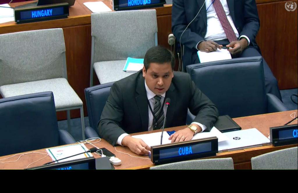 New York, 15 April 2019. In his statement at the Tenth Session of the United Nations Open-Ended Working Group on Aging, Jorge Luis Cepero Aguilar, Second Secretary of the Permanent Mission of Cuba to the United Nations, stated that in the island the increase in the quality of life of the elderly has been possible thanks to the political will of the Government and to the efforts and participation of the people. All this in spite of the harsh economic, commercial and financial blockade imposed to the Caribbean nation for almost six decades and that has a direct impact on its social development