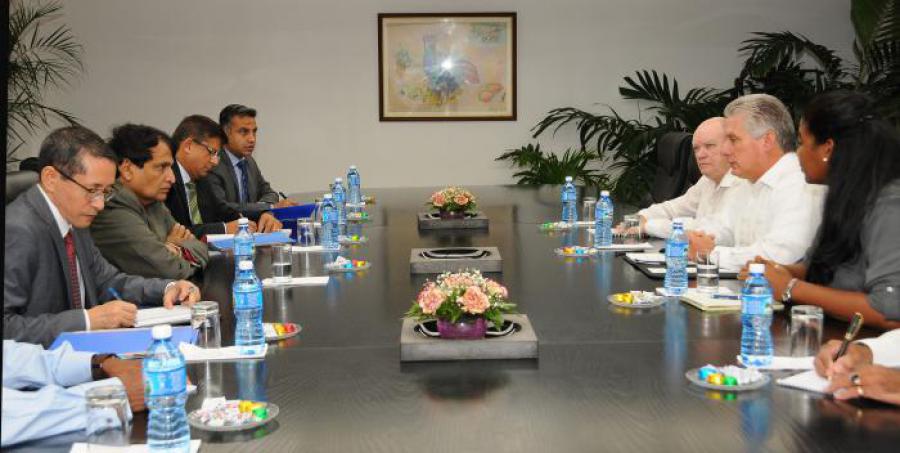 First Vice President of Cuba’s Councils of State and Ministers, Díaz-Canel Bermúdez, received the Honorable Suresh Prabhu, Minister of Commerce and Industry of India, this Monday, October 30, who traveled to the island leading a large delegation of businesspeople participating in the 35th edition of the Havana International Trade Fair