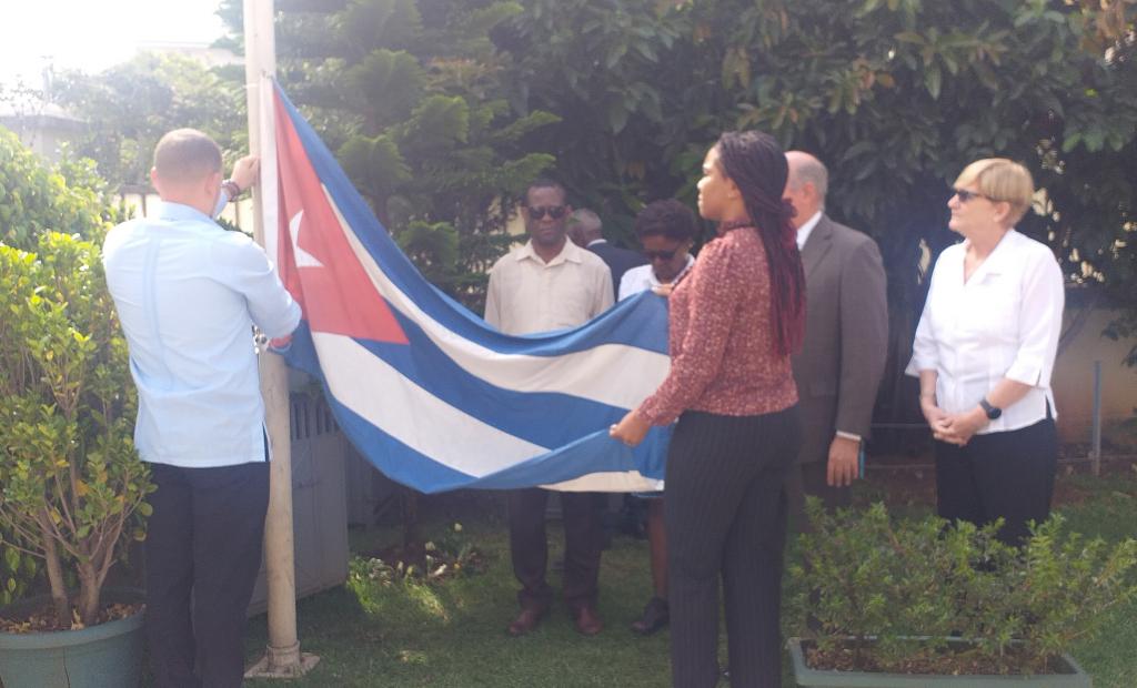 The members of the Cuban Embassy in Ethiopia in homage to the date, gathered in front of the Cuban flagpole, sang the lyrics of the National Anthem, a sign of pride that this march defines our identity of struggle and the willingness to give our lives for our nation.