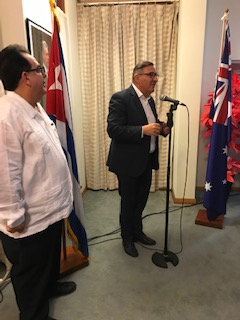 The Cuban Ambassador, José Manuel Galego Montano, briefed during his remarks to the attendees on important issues of the political, economic and social background of Cuba, highlighting also the most important advances achieved in recent years in the field of bilateral relations, such as the visit to Cuba paid by the former Minister for Foreign Affairs Julie Bishop in 2017, the projects on oil prospecting and extraction with the Australian company Melbana as well as the signing of the first agreement on biotechnology, wich was reached last May in Melbourne.