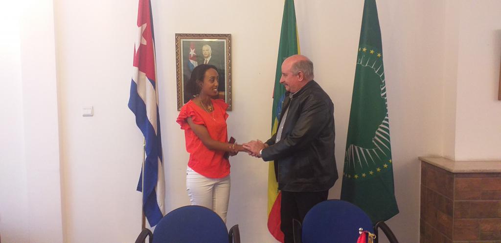 During the meeting, the ambassador signed together with the Ethiopian student the documents that endorse her incorporation into medical studies in Cuba, next August.