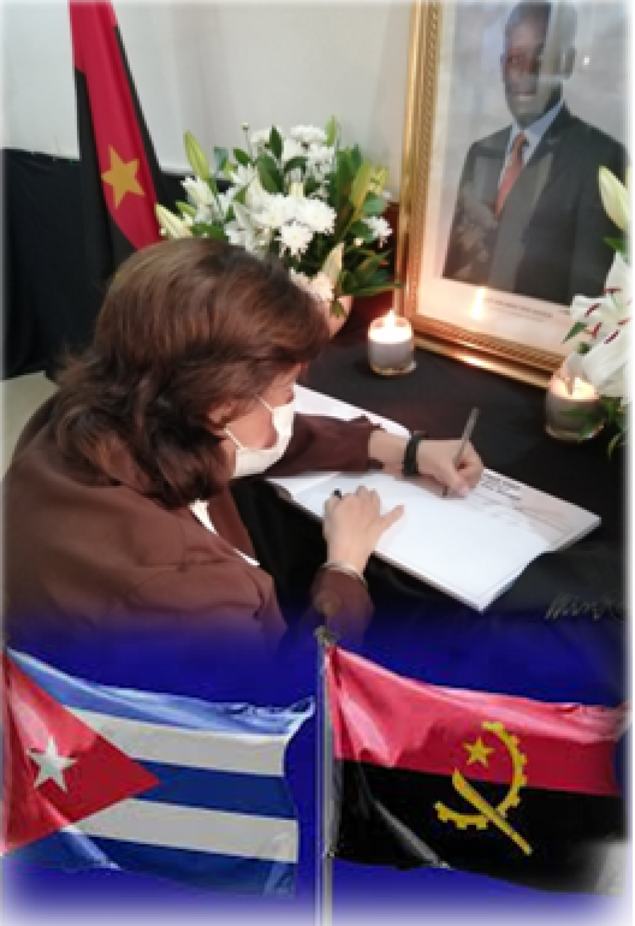 Nigeria, July 13, 2022.- The Cuban ambassador to this country, Clara M. Pulido Escandell, signed the book of condolences for the death of Comrade José Eduardo dos Santos, former president and friend of Cuba, as announced by Cuban President Miguel Díaz-Canel, on July 8 in a message on social networks.