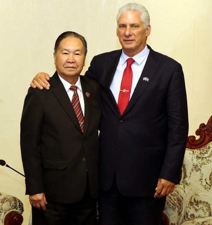 Vientiane, September 7, 2025. An emotional and friendly meeting took place between the Cuban president and the Vice President of the Lao National Assembly and the President of the Lao Friendship Association (AALC) and the Laos-Cuba Parliamentary Friendship Group, comrade Chaleun Yiapaohoer, accompanied by the board of directors. After the warm greeting, the Cuban president expressed, "We know that in these distant lands there are hearts that beat for Cuba, which is why it was important to meet with you."