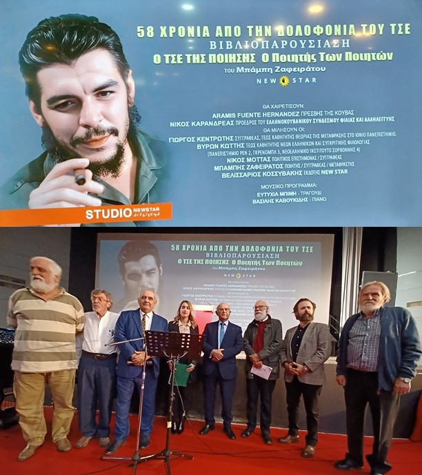 In addition to the interesting presentation by the book's author, other speakers, including the Cuban ambassador to Greece, Aramís Fuente Hernández, Nikos Karandreas, president of the Hellenistic-Cuban Association of Friendship and Solidarity, and other well-known academics and writers, highlighted the significance of the 650-page work, which focuses on Che and his hitherto little-known facet as a poet.
