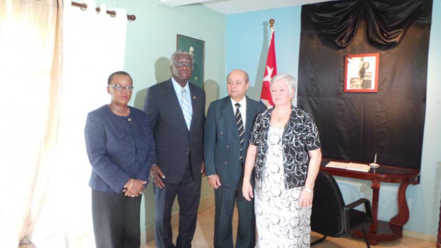 With the distinct presence of The Right Honourable Freundel J. Suart, Prime Minister of Barbados, and the Honourable Senator Maxine McClean, Minister of Foreign Affairs and Foreign Trade, it was opened the Book of Condolences at the Cuban Embassy in Bridgetown for all those who may present their respects in tribute to the Commandant in Chief and Leader of the Cuban Revolution, Dr. Fidel Castro Ruz, who passed away this November 25, 2016, exactly 60 years after he left Mexico on board of Granma together with 82 expeditionaries to get Cuba free, goal which was successfully achieved 5 years, 5 months and 5 days after they have had attacked the Moncada Garrison on July 26, 1953. The book will be opened during the nine mourning days decreed by Cuban Government, until December 4.