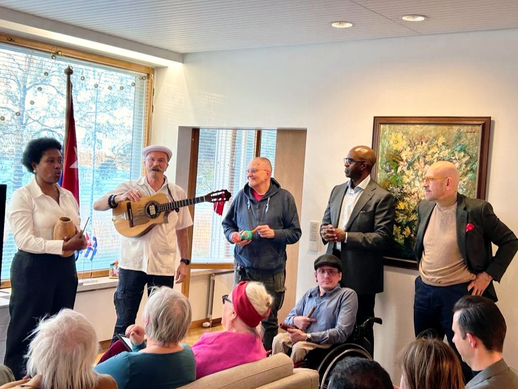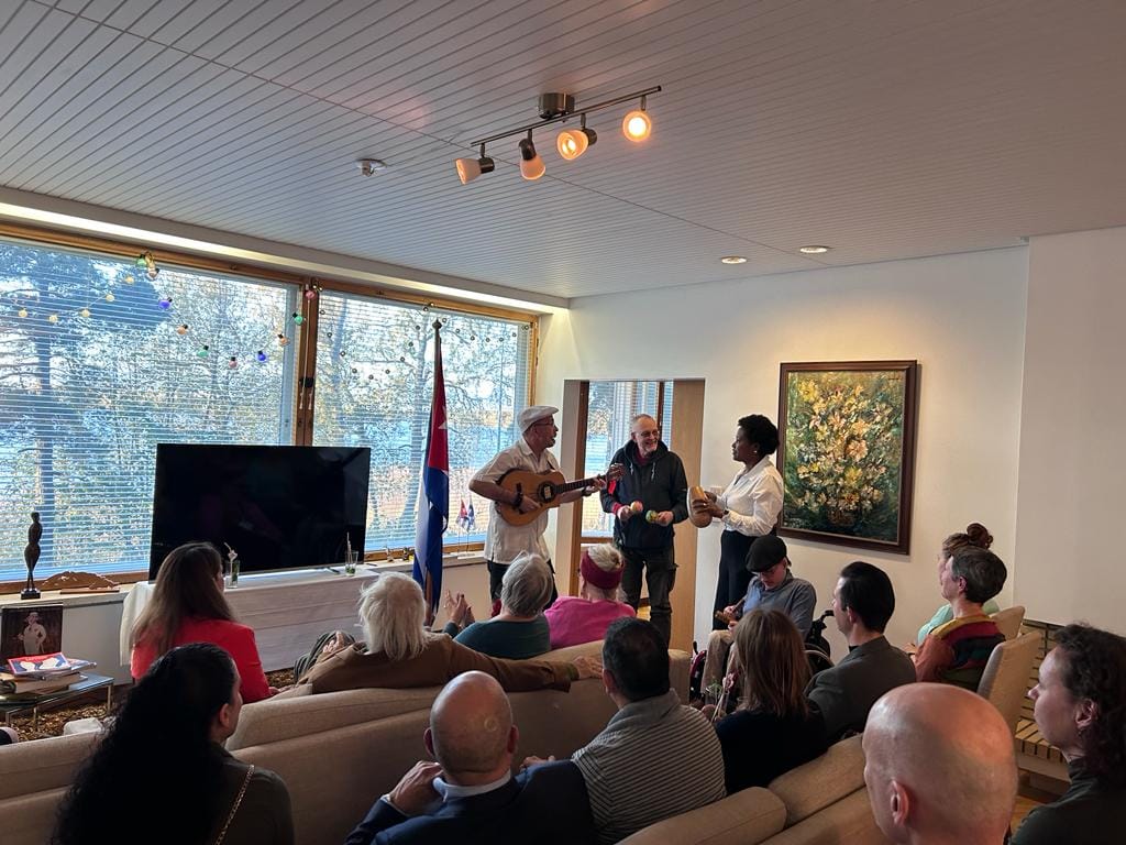 Helsinki, October 23, 2023.- This October 20, members of the community of Cubans residing in Finland participated in the tribute to the Cuban National Anthem, on the 155th Anniversary of its creation, in an event organized by the Cuban Embassy in Finland, a moment for the recognition of those who during the last six decades have promoted Cuban cultural values in these Nordic lands.