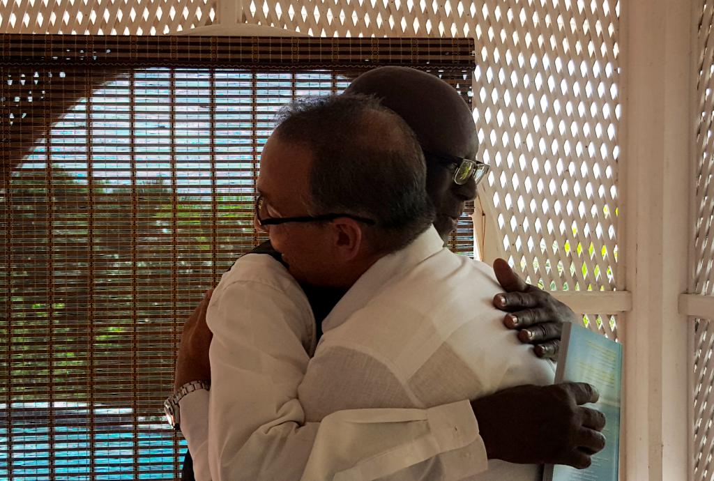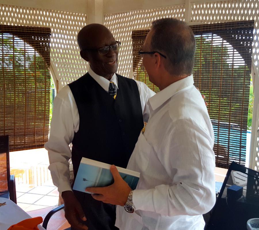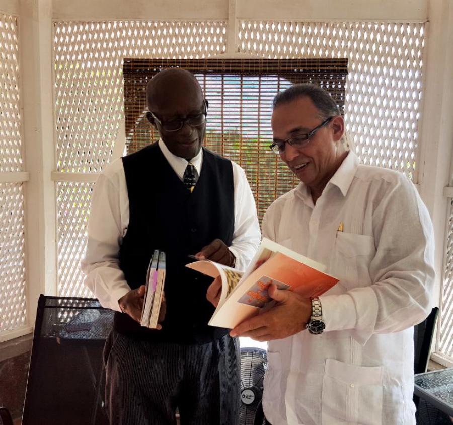 A working visit to St. Vincent and the Grenadines allowed the meet of Antonio Guerrero, one of five Cuban heroes who suffered unjust imprisonment in U.S. prisons, with the prominent lawyer, former Minister and former Attorney General, Parnell Campbell, who chaired the Committee for the Liberation of the Five in St. Vincent and the Grenadines.
