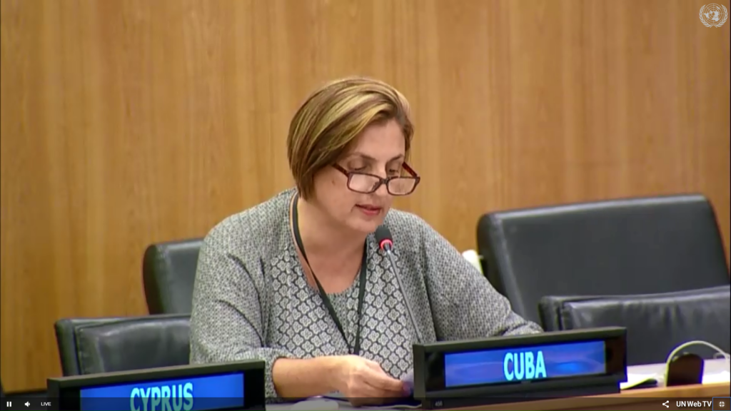 New York, October 19, 2018. The Second Committee of the United Nations General Assembly, discussed Agenda Item 16 entitled, "Information and communication technologies for development”. In her statement Rosalia Cue Delgado, Second Secretary at Permanent Mission of Cuba to the UN, highlighted the deep gaps between developed and developing countries, regarding a group of emerging technologies such as the Internet of Things , blockchains, cloud computing and artificial intelligence.