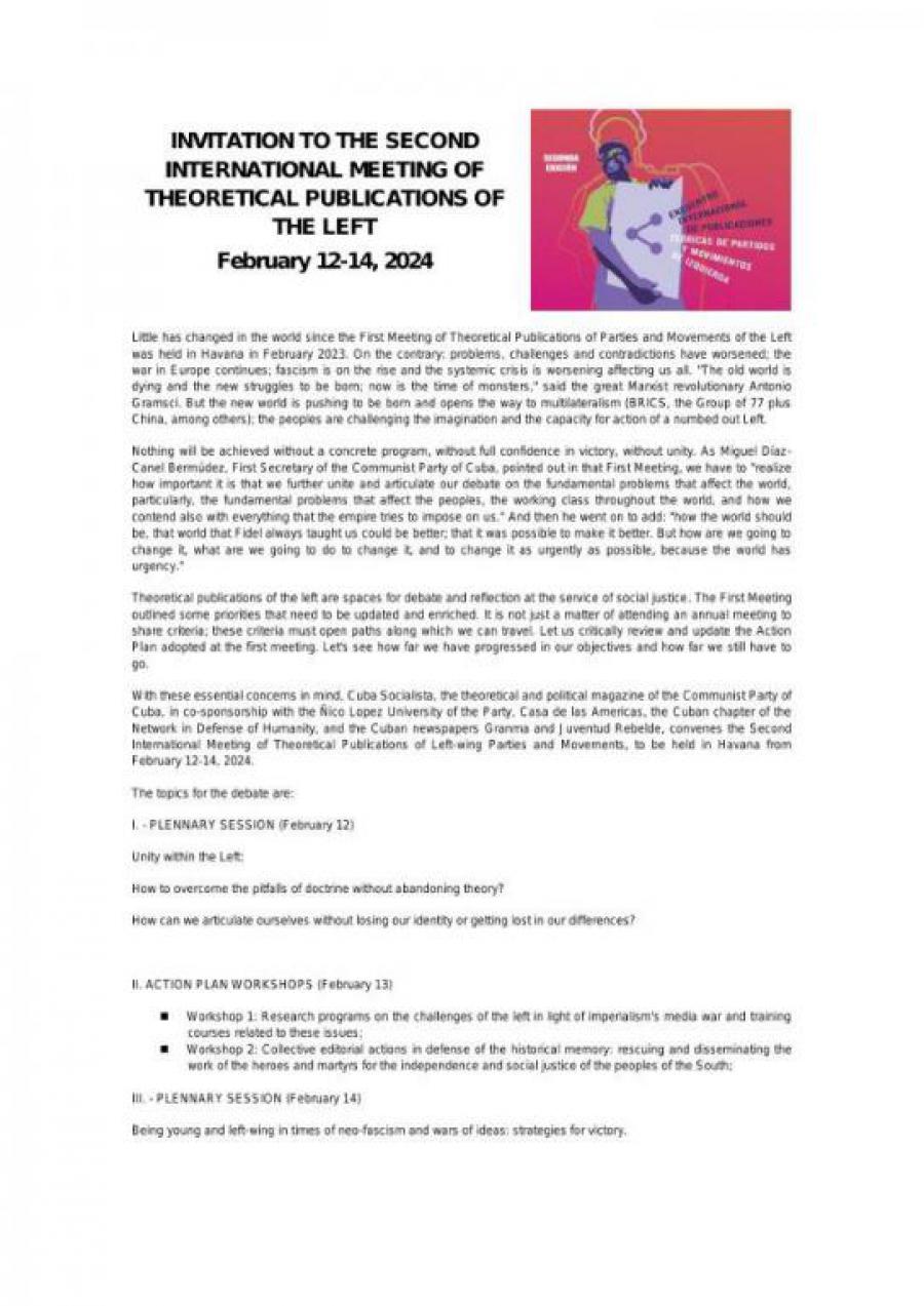 INVITATION TO THE SECOND INTERNATIONAL MEETING OF THEORETICAL PUBLICATIONS OF THE LEFT