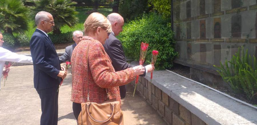 Addis Ababa, May 10, 2024. The visit made by the ISRI delegation led by Dr. C. Leonel Caraballo Maqueira, Ambassador Eumelio Caballero Rodríguez and colleagues from the Cuban Embassy in Ethiopia to the impressive Victory Monument was deeply moving.