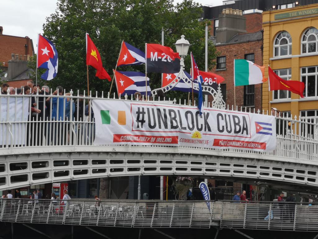 Dublin, July 26, 2022. Residents of this city witnessed the July 26 celebration today. In a massive act, representatives of the organizations that make up the Movement of Solidarity with Cuba, of different Irish political parties, of trade union organizations of friends, Cuban residents and the group of the Caribbean Embassy, celebrated the occasion from the afternoon, first in the bridge “Ha'penny Bridge”, one of the most emblematic of the Irish capital and later, in the bookstore “Connolly Book Shop”.