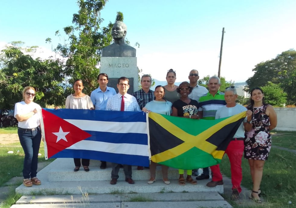 Kingston, 7 December 2023. A representation of the Cuban state mission in Jamaica, headed by Ambassador Fermín Quiñones Sánchez and Tamara Armenteros, from the Institute of Friendship with the Peoples (ICAP), paid tribute to the Bronze Titan 127 years after his fall in combat, in front of the statue raised in his honour in Heroes Park in this city.
