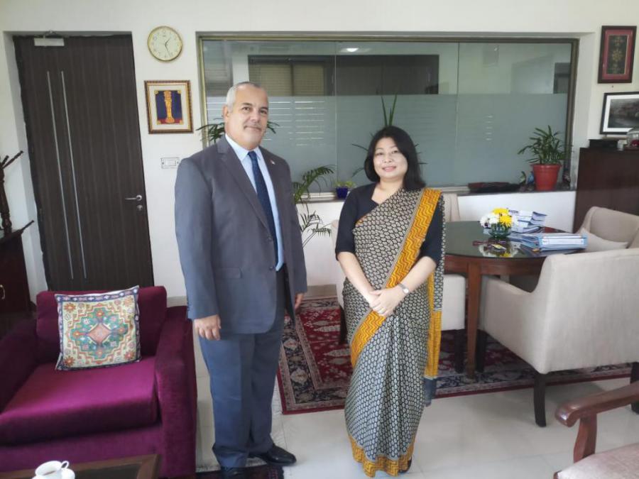 The Ambassador designated of Cuba in India, Alejandro Simancas, was received in the Ministry of External Affairs, by the Joint Secretary, Gloria Gangte, head of the Division of Latin America and the Caribbean. During the meeting, they reviewed the main issues on the bilateral agenda and ratified the common will to strengthen the political dialogue between the two Foreign Ministries and give greater impetus to commercial and economic ties. The Second Secretary of the Diplomatic Mission, Juan Carlos Marcof, accompanied the Ambassador.