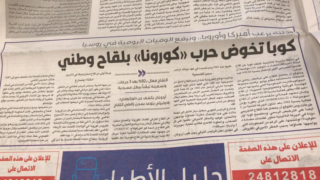 Kuwait, Junio 22 (Al-Jarida Newspaper): As research laboratories around the world continue to race against time to develop more vaccines against the Corona virus, Cuba, in a precedent in Latin America, entered the streak of this marathon, and the Cuban government pharmaceutical group “Biocupapharma” announced that “Abdullah” (Abdala), the experimental vaccine that developed by one of its laboratories to combat the Corona virus, it has shown that it is more than 92 percent effective.