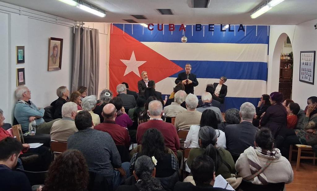 Geneva, Switzerland, 24 February 2025. — In a fraternal and deeply emotional atmosphere, the Minister of Foreign Affairs, Bruno Rodríguez Parrilla, held a meeting with Cubans residing in Switzerland and representatives of the solidarity movement with the Island.