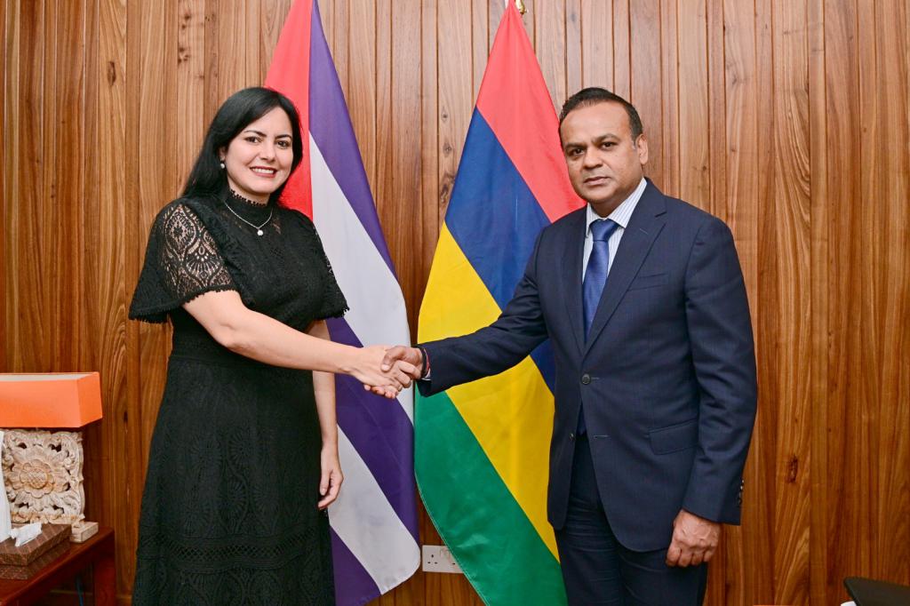 Port Louis, February 28, 2026 – The Minister of Foreign Affairs, Regional Integration and International Trade of Mauritius, the Honorable Dhananjay Ramful, received the Ambassador of Cuba, Her Excellency Susellys Pérez Mesa, with a shared commitment to strengthening bilateral relations.