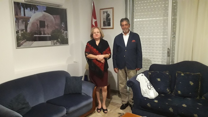 Athens, 10 September. Cuba's Ambassador to Greece Zelmys Maria Dominguez Cortina held meeting at the headquarters of the Cuban embassy with Palestine Ambassador to Greece Marwan Emile Toubassy.