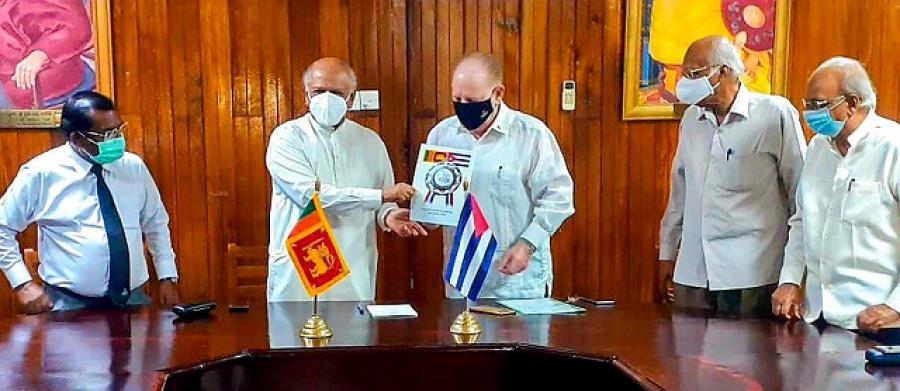 At the meeting were present, in addition to Dinesh Gunawardena Minister of High Education, the Member of Parliament, Professor Tissa Vitharana, President of the Sri Lanka Cuba Friendship Group in Parliament, D. E W Gunasekara and Dr. G. Weerasinghe, Leader and Secretary General of the Communist Party of Sri Lanka respectively as well the Member of the Parliament Yadamini Gunawardena.
