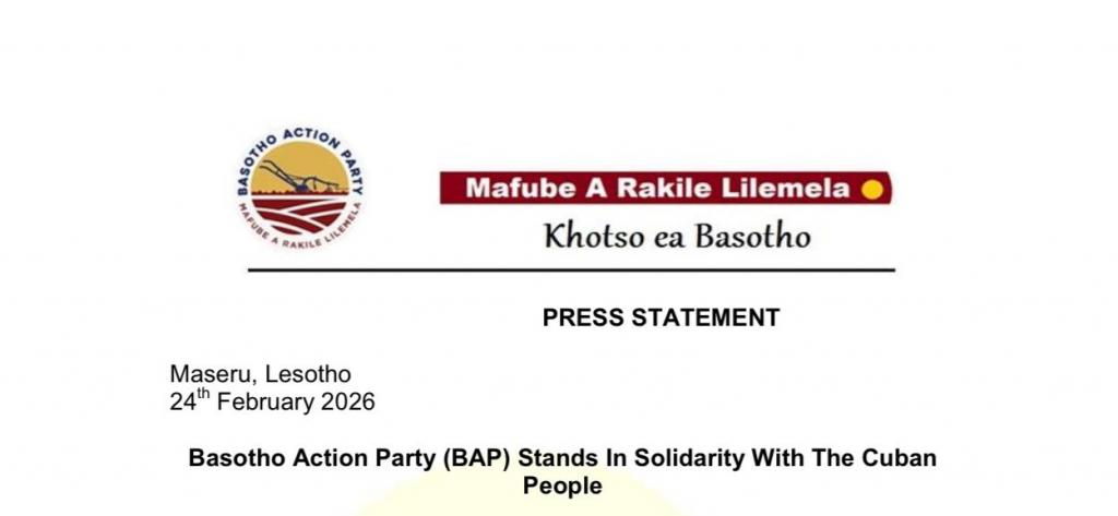 Pretoria, 25 February 2026.- Messages of solidarity with Cuba continue to arrive from the African continent, this time from the Basotho Action Party of the Kingdom of Lesotho, which issued a strong statement of solidarity with the Cuban people in these difficult times.