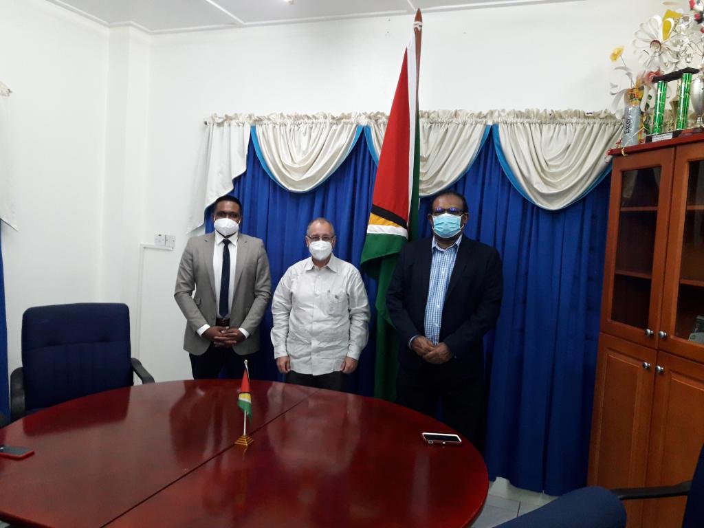 Georgetown. August 20, 2020. The Minister of Local Government and Regional Development, the Honorable Nigel Dharamlal, and the Minister within that Ministry, Honorable Anand Persaud received the Ambassador of Cuba, Narciso Reinaldo Amador Socorro, who congratulated both senior Guyanese officials for their recent appointments.