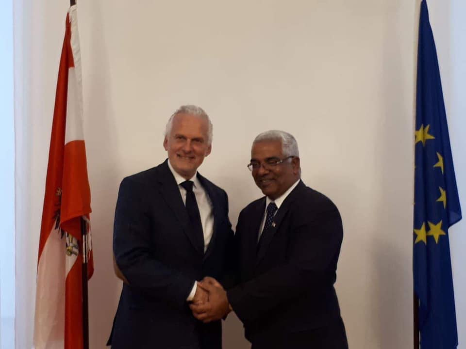 As part of the working program executed in Austria by the delegation led by Dr. Oscar Manuel Silvera Martínez, Minister of Justice of the Republic of Cuba, a fraternal meeting was held today with the Federal Minister of Constitution, Reforms, Deregulation and Justice of Austria, Dr. Josef Moser, at the premises of the Austrian Ministry. In the meeting both parties reaffirmed their willingness to continue strengthening the bilateral bonds established in the legal sector.