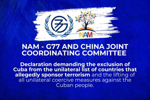 The Non-Aligned Movement (NAM) and the Group of 77 and China, through their Joint Coordinating Committee, demanded the immediate exclusion of Cuba from the unilateral list of countries that allegedly sponsor terrorism.