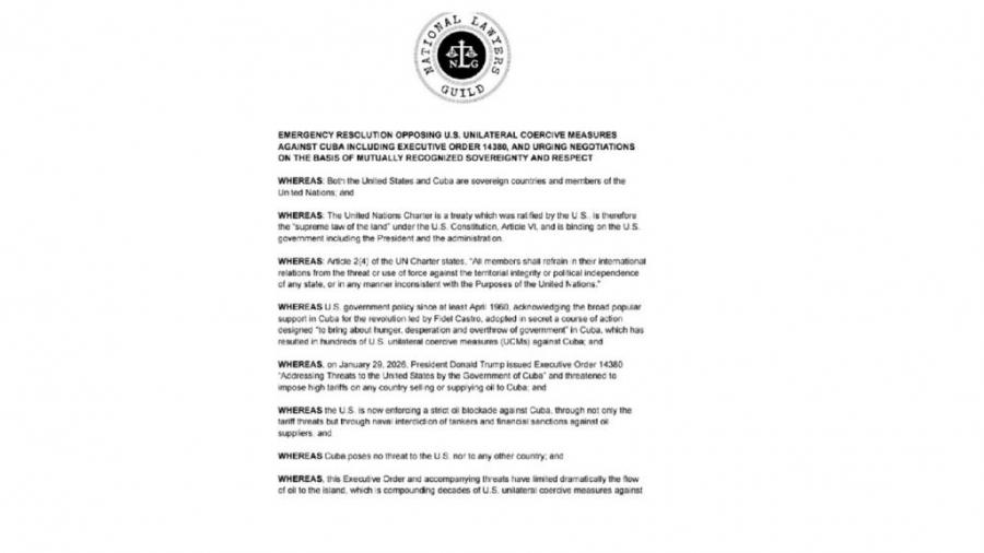 The NLG calls for the immediate repeal of Executive Order 14380, the initiation of good-faith negotiations with the Government of Cuba based on mutual respect for sovereignty, and for the United States Congress to repeal the Helms-Burton Act and all laws that hinder the normalization of relations between the two countries.
