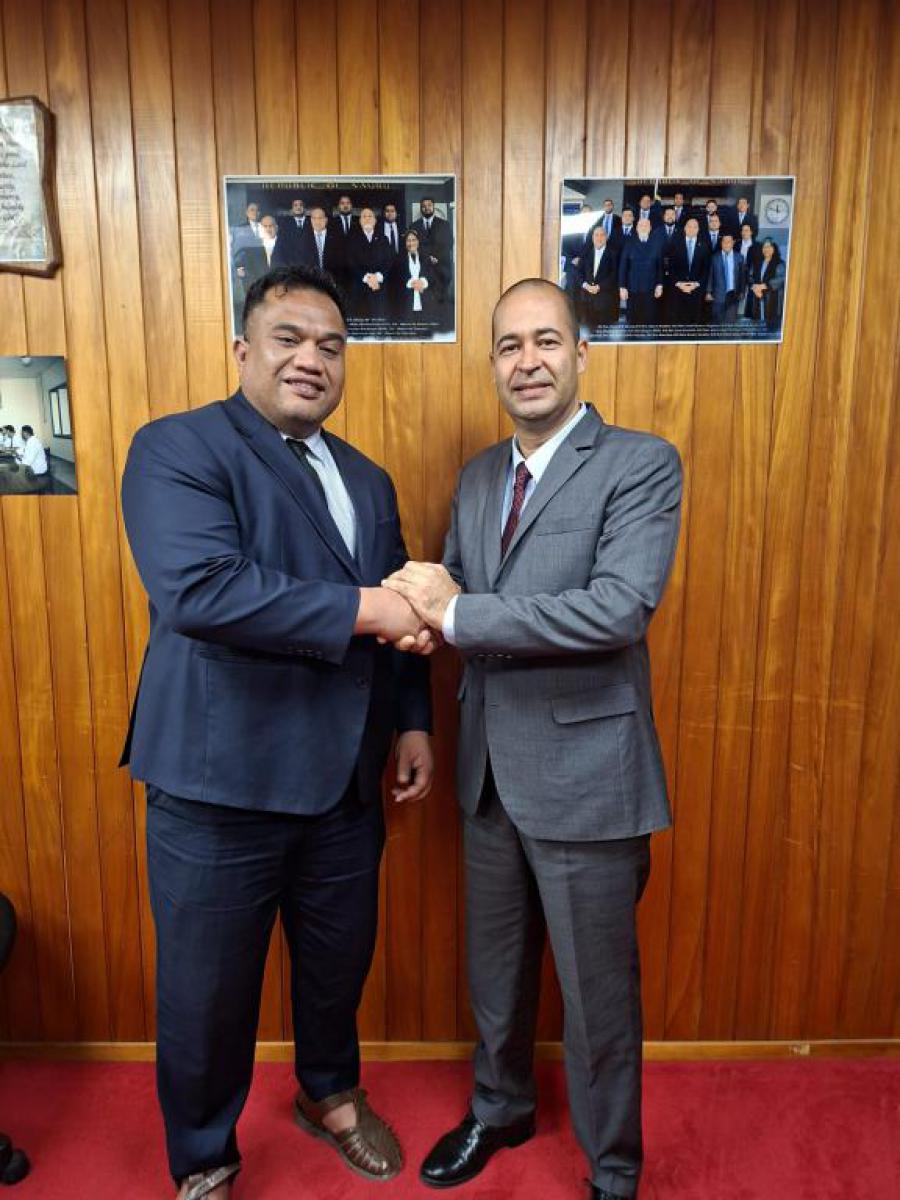 Yaren, March 20, 2026. - During his official visit to Nauru, Cuban Ambassador Nestor Enrique Torres Olivera was received by the Acting Minister of Foreign Affairs and Trade, Hon. Delvin Thoma. The two officials held a cordial meeting to review the status of bilateral ties, cooperation across various sectors, and the mutual support shared within international organizations.
