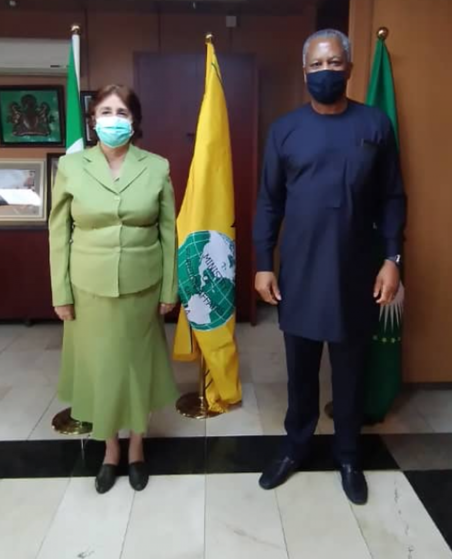 Nigeria, October 20, 2021.- The Honorable Minister of Foreign Affairs, H.E. Geoffrey Onyeama received in audience the Ambassador of Cuba in Nigeria, Clara Pulido Escandell, at the headquarters of the Nigerian Foreign Ministry.
