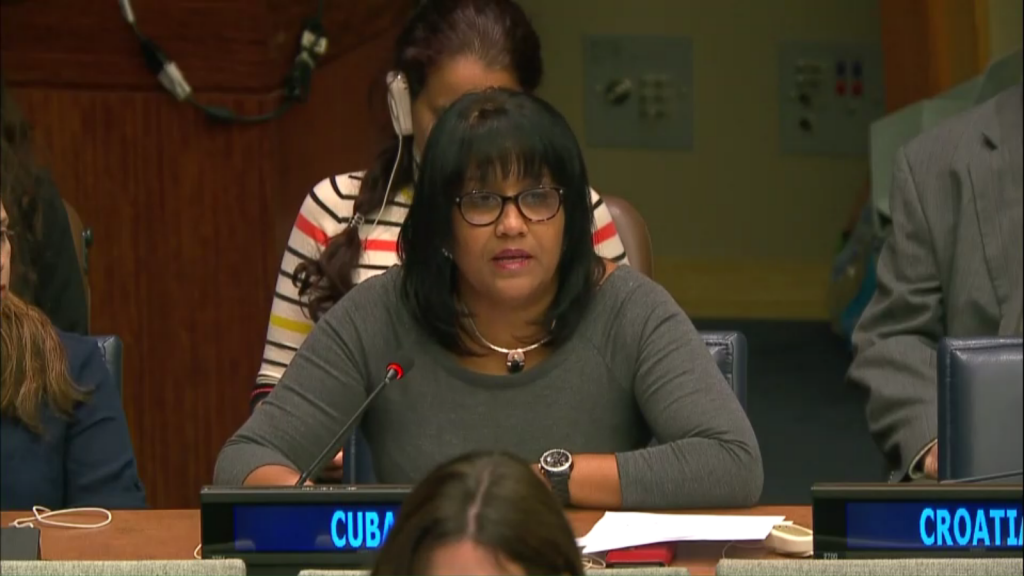 New York, October 12, 2017. During the Thematic Debate on Nuclear Weapons of the First Committee of the 72nd Session of the United Nations General Assembly, Cuban Ambassador Anayansi Rodriguez Camejo, warned that the intentional or accidental detonation of a tiny part of the almost 15,000 existing nuclear weapons would have disastrous consequences for our planet and the future of humanity. Hence, she exhorted the international community not to remain passive or silent in the face of the serious danger posed by nuclear weapons, the threat of a nuclear war and the increase of military expenditures for the development, modernization and manufacture of new weapons.