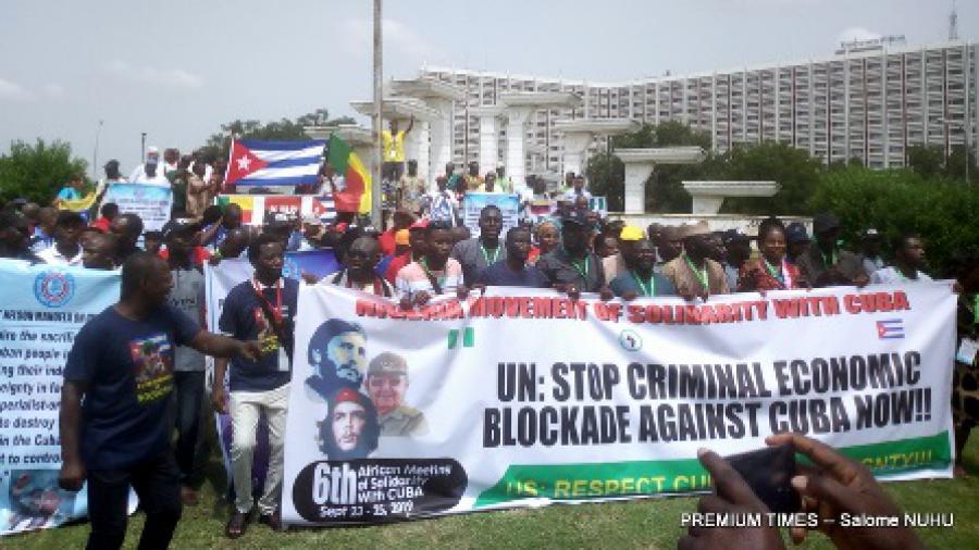 Premium Times, September 26, 2019. More than 500 delegates from 25 African countries and around the world have protested the 60-year economic sanction imposed on Cuba by the United States government. The protest march which was initially scheduled for the U.S. embassy in Nigeria was later held at the Unity Fountain, Abuja, on Wednesday.