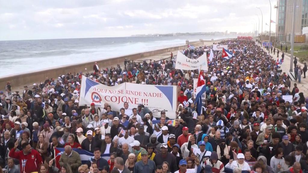 На империята, която ни заплашва, казваме: Куба — ние сме милиони! Ние сме народ, готов да се бие, ако ни нападнат, със същото единство и ярост като 32‑та кубинци, паднали на 3 януари.