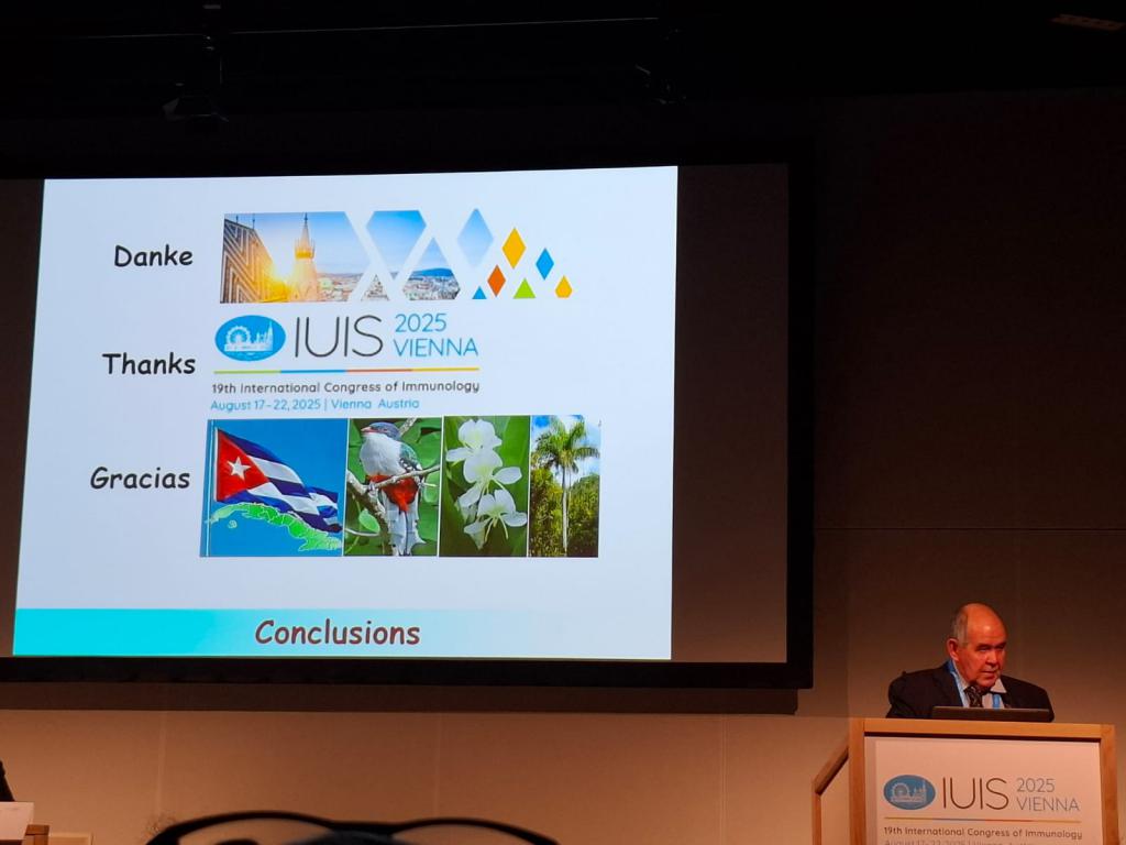 Vienna, August 19. Dr. Maria del Carmen Dominguez, head of the autoimmunity division of CIGB, BioCubaFarma and Dr. Oliver Perez, Full Professor at the University of Medicine of Havana, member of the Cuban Academy of Sciences and former president of the Latin American Association of Immunology, represent Cuba at the 19th Congress of Immunology to be held in Vienna from August 17-22, 2025.