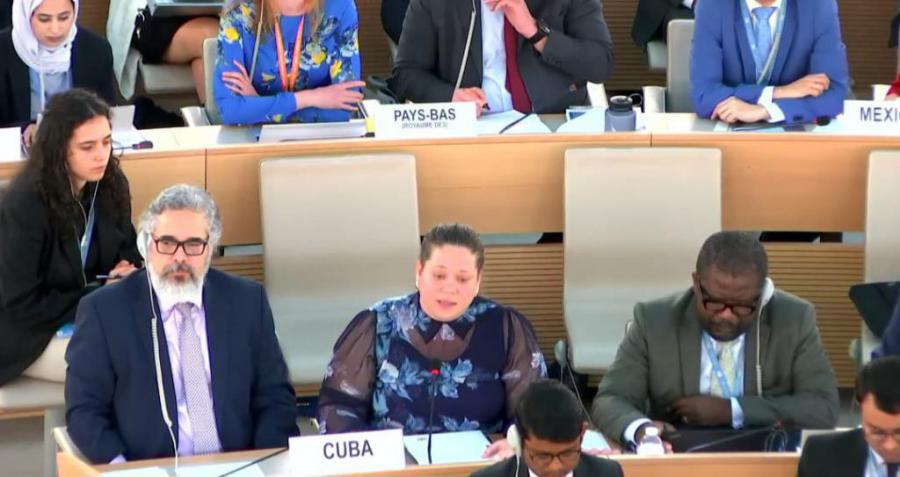 Second Secretary Greisy Cordero, speaks in explanation of vote on draft resolution L.27 rev.1 on Human Rights Defenders. 58th Human Rights Council.