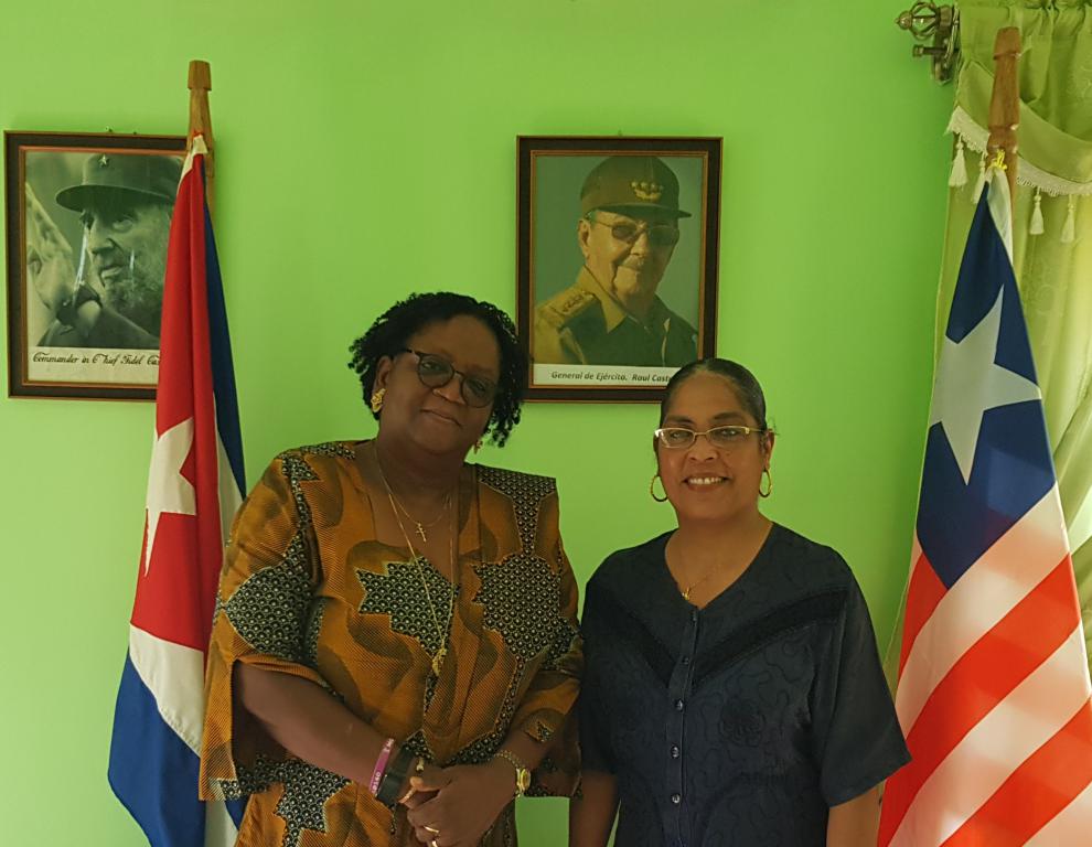 Monrovia, January 2, 2021.- The Head of Mission of the Cuban Embassy in Liberia, Mercedes L. Martínez Herrera, held a working meeting with Ambassador Medina A. Wesseh Esq, Secretary General of the regional organization Mano River Union, who visited the Cuban Embassy in Monrovia.