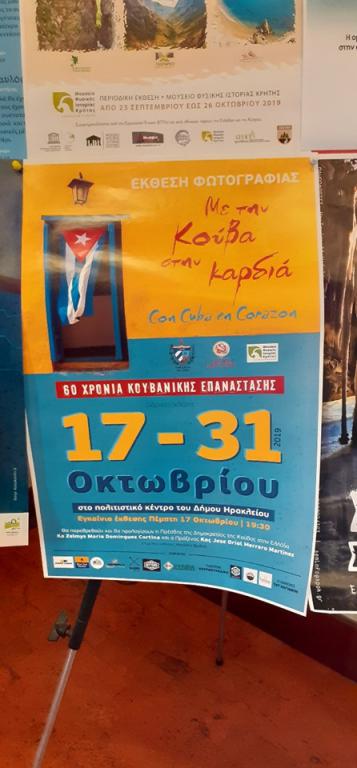 The main objective was the inauguration of the photographic exhibition "With Cuba in the Heart", the work of the counselor and consul of the Embassy of Cuba in Greece José Oriol Marrero Martínez, organized by the Municipality of Heraclio, the Natural History Museum and the embassy in Makasi Gallery, in the city's ancient Venetian wall, from 17 to 31 October. The photographic exhibition has already been shown in 10 cities of Greece, Heraclio being the 11th and are images of monuments, heroes and historical places, urban and rural landscapes, the sea, faces of Cubans, flora, fauna, sunsets, full of beauty that invite to visit the beautiful and heroic country. An excellent cultural action for the day of Cuban Culture in the year of the 60th anniversary of the Revolution.