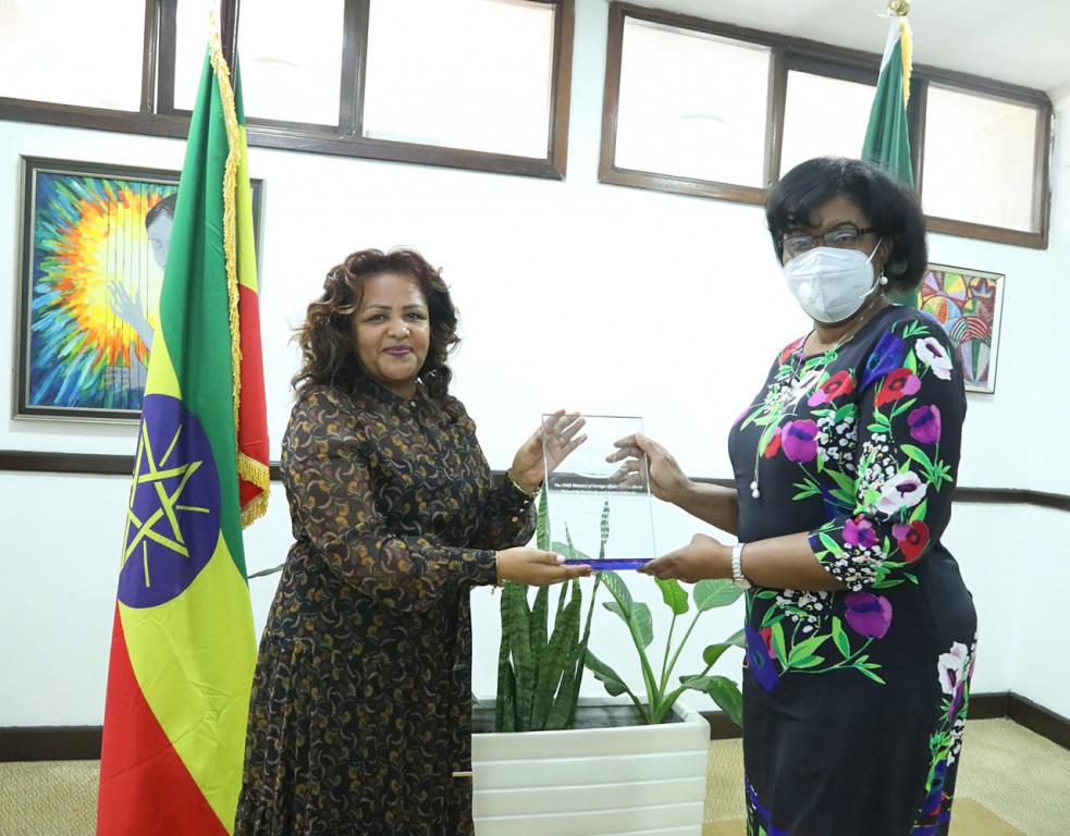 During the meeting, the State Minister presented the Ambassador with a plaque of recognition on behalf of the Ministry of Foreign Affairs of Ethiopia for the work carried out by the Cuban diplomat in favor of strengthening relations between the two countries. Ambassador Birtukan reiterated the Ethiopia's willingness to continue advancing in expanding cooperation with Cuba in the bilateral and multilateral spheres.