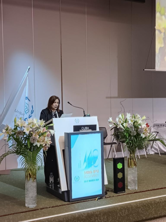 On behalf of Cuban parliamentarians, we raise our voices to promote peace, understanding and solidarity, rejecting domination and hegemonism, unilateral coercive measures, genocidal blockades and the attempt to impose a single culture and model on the world. We advocate that parliamentary diplomacy should guarantee cooperation and dialogue as a premise for conflict resolution.