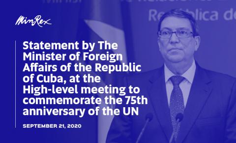 Statement by H.E. Mr. Bruno Rodríguez Parrilla, Minister of Foreign Affairs of the Republic of Cuba, at the High-Level Segment of the United Nations General Assembly marking the 75th Anniversary of the United Nations. September 21th, 2020.