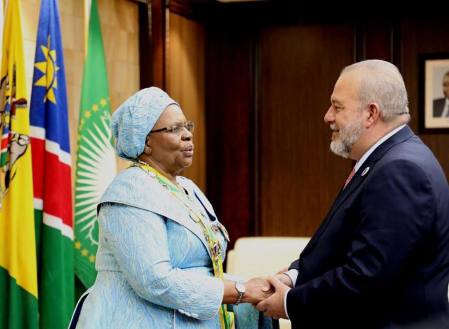 As part of his busy schedule in this southern African nation, the Prime Minister held meetings with Nangolo Mbumba, outgoing president, and Saara Kuugongelwa, former prime minister of the Republic and newly elected speaker of the National Assembly. During these exchanges, he expressed his gratitude for the solidarity and brotherhood of the Namibian people in defense of our just causes.