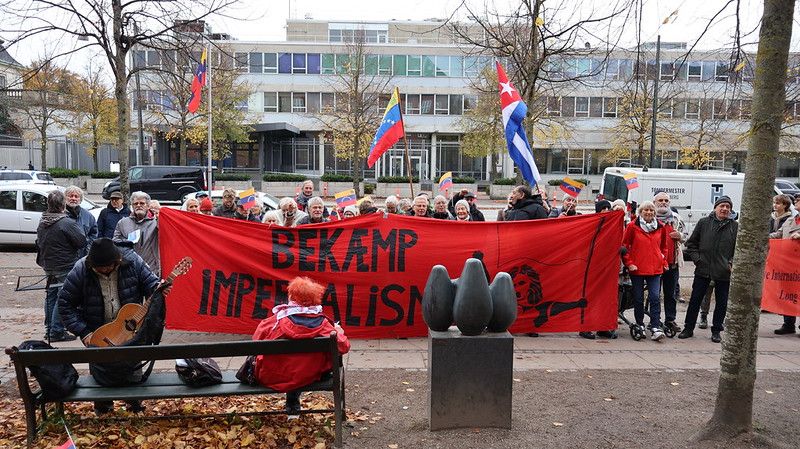 On Saturday, October 25th, we gathered in front of the US embassy in Copenhagen. In protest against the US threats and the preparation of a military attack on Venezuela, in protest against the US blockade against Cuba and a loud NO to imperialist oppression of Latin America. Be ready for new protests. The war against Venezuela can start at any time!!!! and Cuba is being suffocated by the blockade... on Wednesday the blockade is up for debate in the UN General Assembly. Go to this page (https://www.facebook.com/danskcubanskforening/) on Facebook on Wednesday October 29th at 7 pm where the Cuban ambassador Ana Marian Chongo will be interviewed live following the votation in New York.........