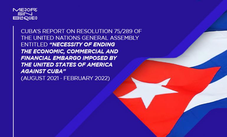 This document contains an update on Cuba's response to United Nations General Assembly (UNGA) resolution 75/289, entitled "Necessity of ending the economic, commercial and financial embargo imposed by the United States of America against Cuba".